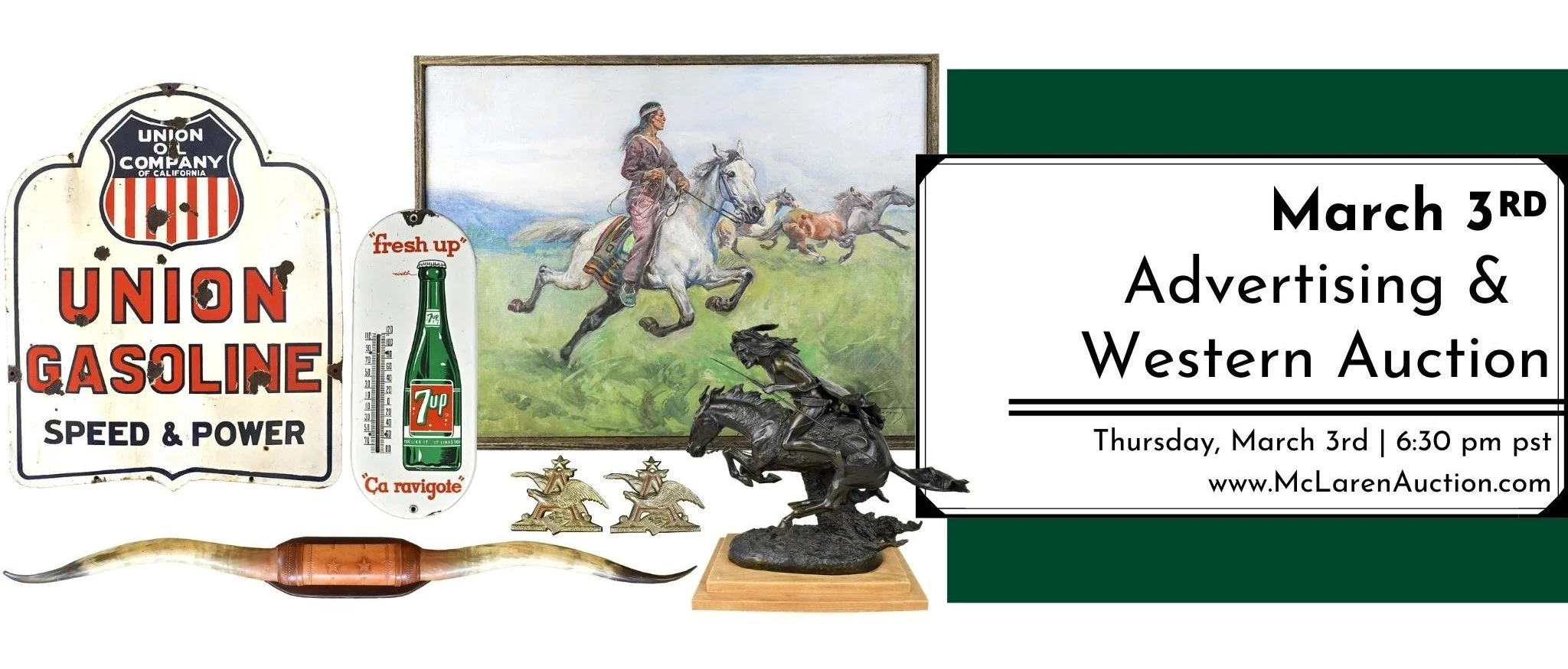 Advertising & Western Auction Thursday, March 3, 2022 6:30 PM 10:30 PM McLaren Auction Services 21507 Highway 99E NE Aurora, OR, 97002 United States (map) Google Calendar ICS view catalog